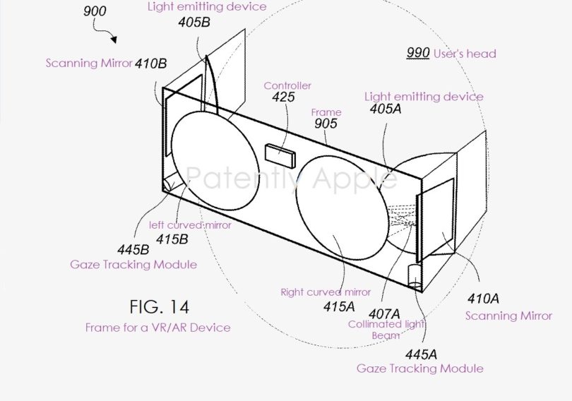 На этой неделе Ведомство по патентам и товарным знакам США опубликовало патент, поданный Apple Inc., для нового типа гибридного устройства VR/AR, которое отказывается от обычных экранов в пользу динамического 3D-дисплея с фокусировкой, проецирующего изображения непосредственно на сетчатку глаза пользователя.