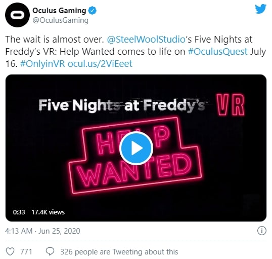 Five Nights at Freddy’s VR: Help Wanted будет запущен на Oculus Quest 16 июля и теперь доступен для списка желаний в магазине Oculus.