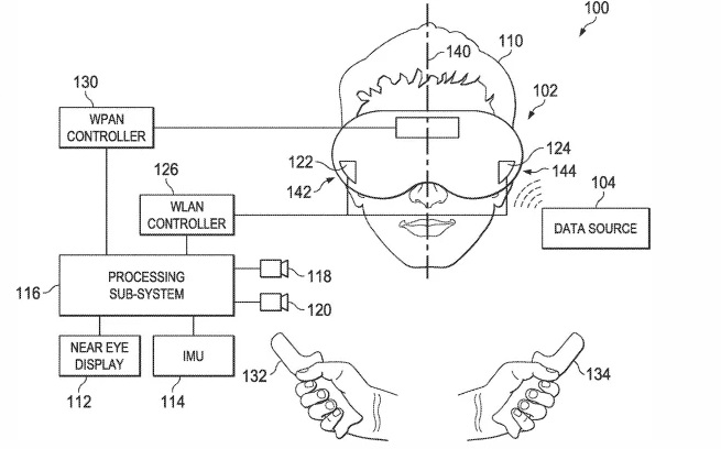 В документе описывается VR-устройство, которое крепится на голову (Head Mounting Display) и сопрягается с компьютером или смартфоном посредством беспроводной технологии. Судя по эскизу, гарнитура будет работать в связке с двумя контроллерами. На обратной стороне устройства предусмотрены два модуля WLAN и один WPAN для подключения контроллеров.