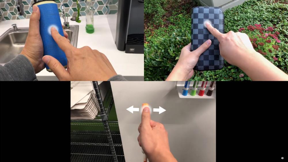 В дополнение к двуручному управлению, также возможен ввод только одной рукой. В качестве примеров исследовательская группа приводит в своем отчете бутылку с распылителем и фломастер. Если вы держите ручку в руке, проведите пальцем влево и вправо или нажмите, чтобы подтвердить ввод.