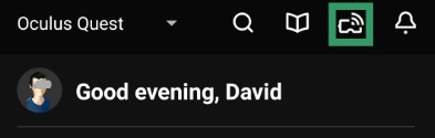 Пока кто-то носит Квест, откройте приложение Oculus на смартфоне, к которому подключена гарнитура. Нажмите на значок Cast в правом верхнем углу приложения: