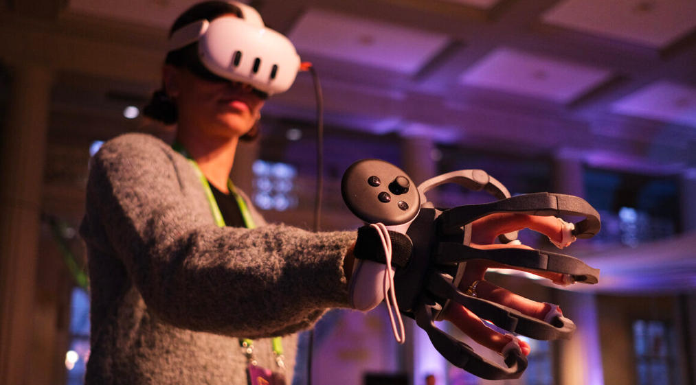 Экзоскелет обеспечивает тактильные ощущение и предлагает 24 степени свободы для каждой руки с точностью движения до субмиллиметра и временем работы до 8 часов. Он предназначен для создания естественных взаимодействий в VR и AR, отслеживая движения запястья и позволяя контролировать каждое движение, от кривизны пальцев до сложных жестов.