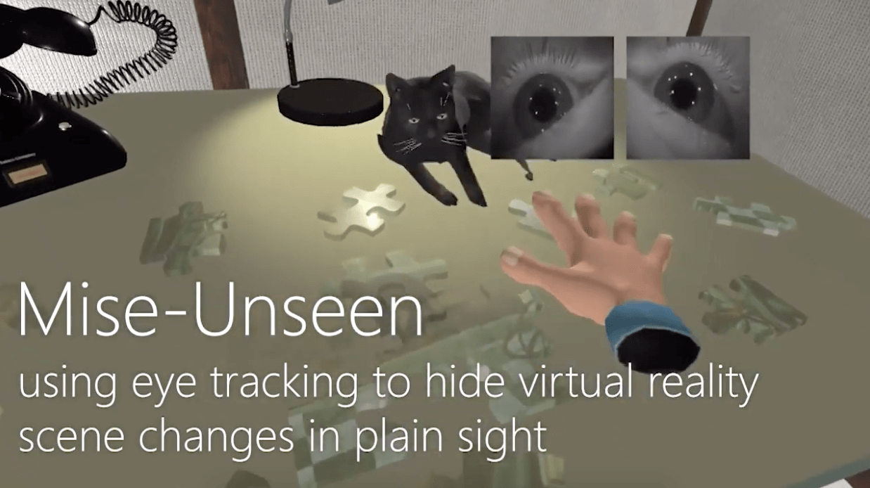 Исследователи из Microsoft придумали метод, позволяющий использовать изменение виртуальной окружающей среды для повышения заинтересованности пользователя. Изменения, вносимые системой в виртуальную среду, происходят в поле зрения пользователя, однако он не замечает их. Это происходит благодаря тому, что система отслеживает направление взгляда и меняет среду только в области периферийного зрения.
