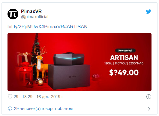 Пока еще слишком мало, чтобы делать выводы, поэтому трудно догадаться, к чему стремится Pimax с его таинственной ценой «$?49,00». Однако компания все еще отстает в выполнении заказов на гарнитуру «8K» для спонсоров и постоянных клиентов Kickstarter, так что рождественские изображения могут быть просто пустым маркетингом и, скорее всего, вовсе не указывают на запуск перед Рождеством 2019 года.
