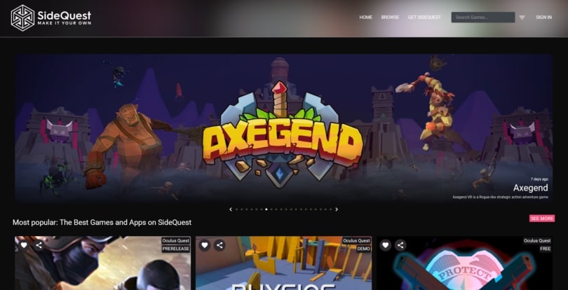 SideQuest можно бесплатно загрузить с сайта sidequestvr.com . Тем, кто хочет загружать контент, необходимо установить для гарнитуры режим разработчика. Полные инструкции можно найти здесь.