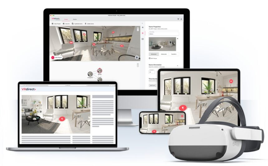 С VRdirect WebStudio компании могут очень просто начать работу в виртуальной реальности: онлайн-редактор запускается прямо в браузере без установки. Нет никаких ограничений на дополнительные сцены, комнаты или функции редактора.