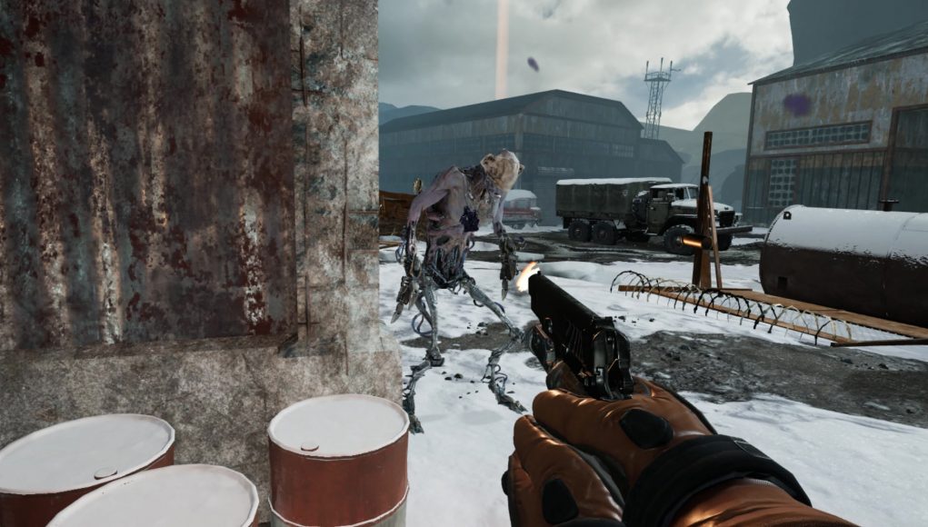 Frostpoint VR: Proving Grounds объединяет игроков в матчи 10 на 10. Есть несколько знакомых игровых режимов, таких как «Контроль» и «Захват», однако игрокам с обеих сторон также придется одновременно сражаться с «Reclaimers», биомеханическими злодеями игры.