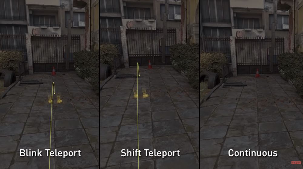 Если вы телепортируетесь с миганием, экран на короткое время становится черным, и игроки появляются в пункте назначения. С помощью сменного телепорта, игроки перемещаются к месту назначения на высокой скорости, при этом экран не становится черным. В этом смысле Shift представляет собой смесь телепорта и плавного передвижения. Видеоролик Valve в основном касается мигания и смещения.