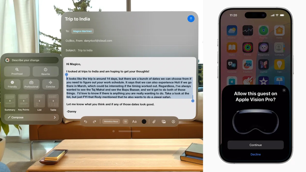 Важно: Apple Intelligence на Vision Pro поддерживает только английский язык (другие языки появятся позже).